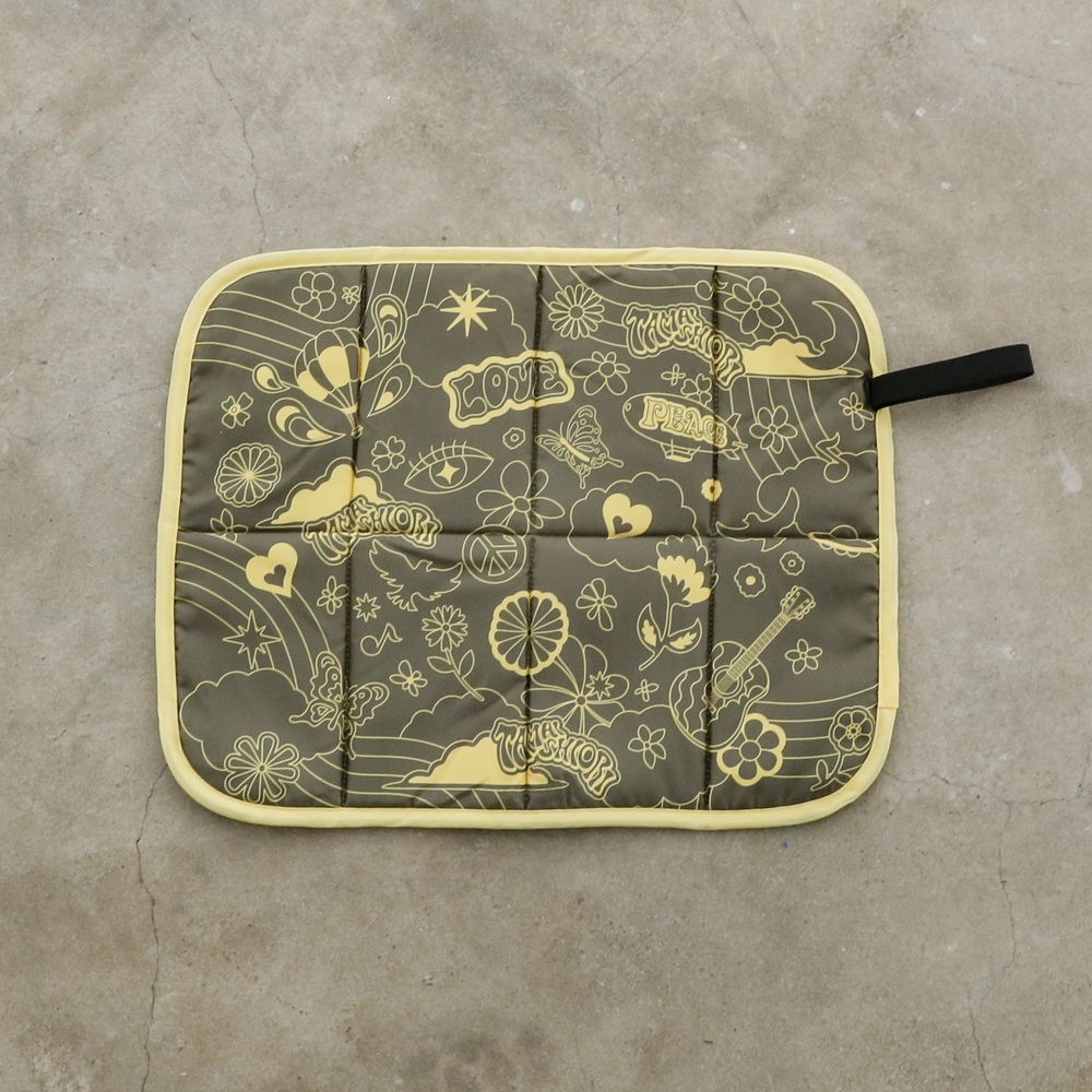 屋内外問わず使用出来る折り畳めるクッション。一人用のサイズです。
