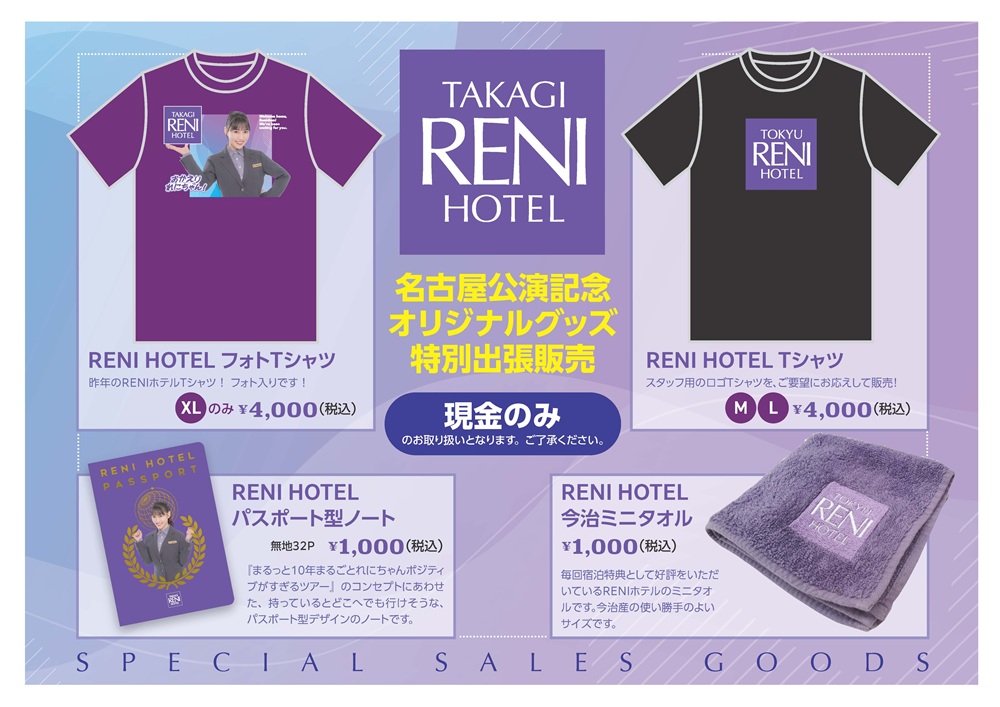 高城れにソロコンサートツアー2025『OTOGIMASHOW』10月2日(木)Zepp Nagoya公演にて、過去販売した「東急RENI HOTEL」グッズの一部を当日会場にて販売することが決定しました!横浜でしかお買い求め出来なかったアイテムが名古屋に上陸!ぜひこの機会をご利用ください♪
