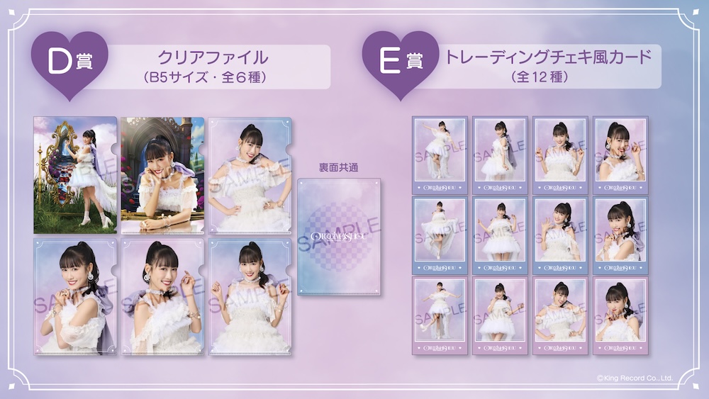 商品のラインナップは、アクリルパネル、アクリルスタンド、アクリルキーホルダー、クリアファイル、トレーディングチェキ風カードの全5種です。『OTOGIMASHOU』のアーティスト写真や、新たな撮り下ろしカットがデザインに使用された、ここだけでしか手に入らない賞品となっています!