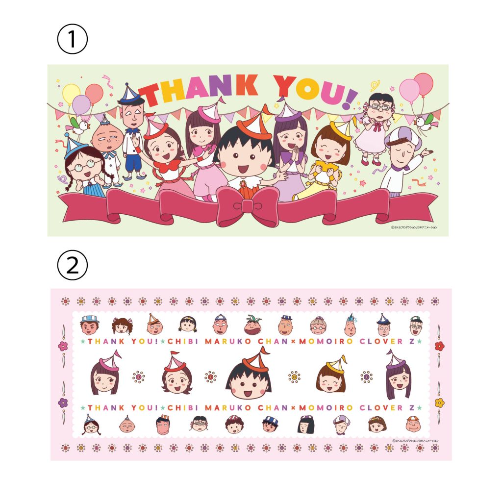 ちびまる子ちゃんたちに感謝の気持ちを込めたデザインと、たくさんの仲間たちが大集合したデザインの2種類展開です!