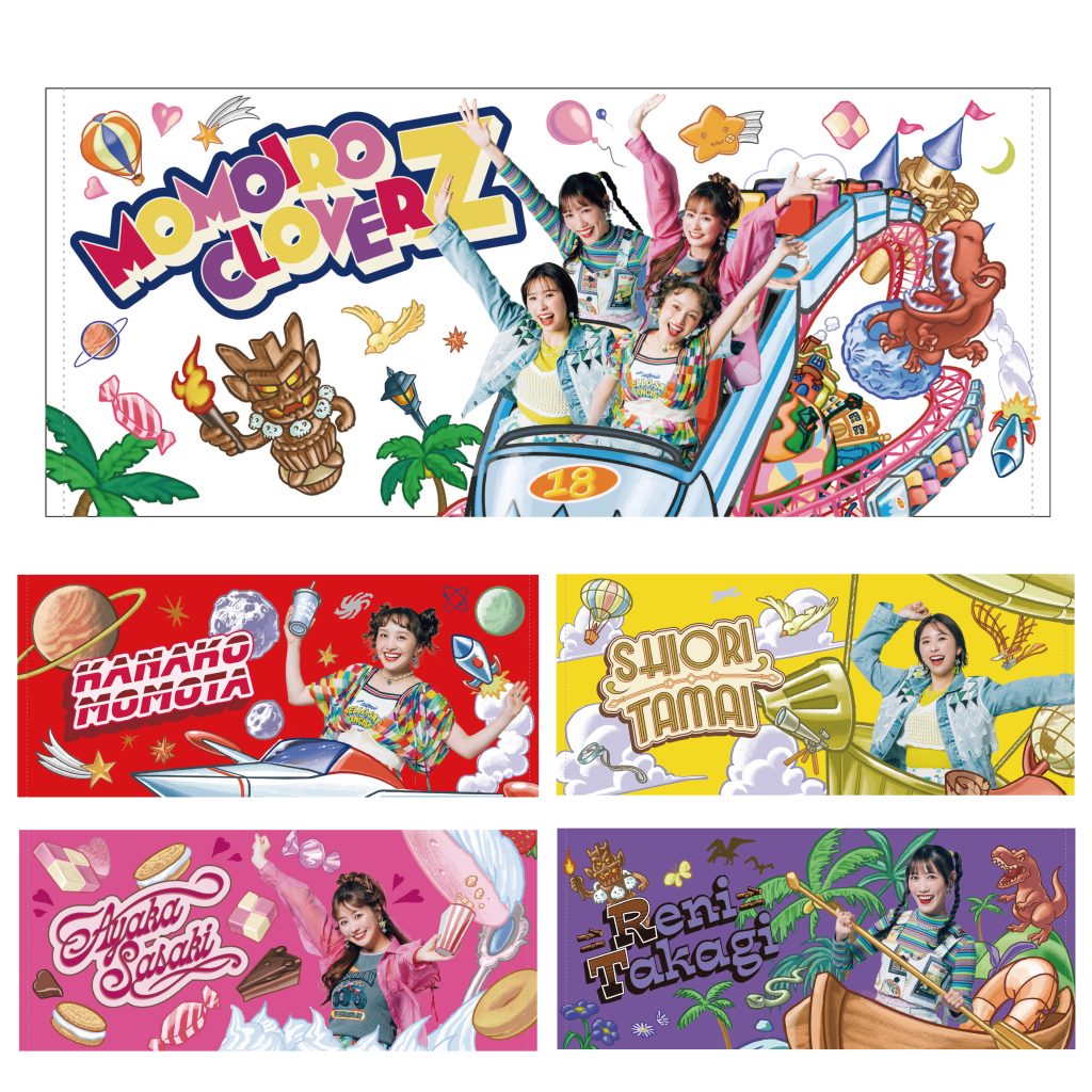 メンバーが「東京ももクロランド」のアトラクションに乗ったポップなデザインが魅力の1枚。春らしいカラーでコーデに取り入れやすく、デイリーにもライブにも活躍します。