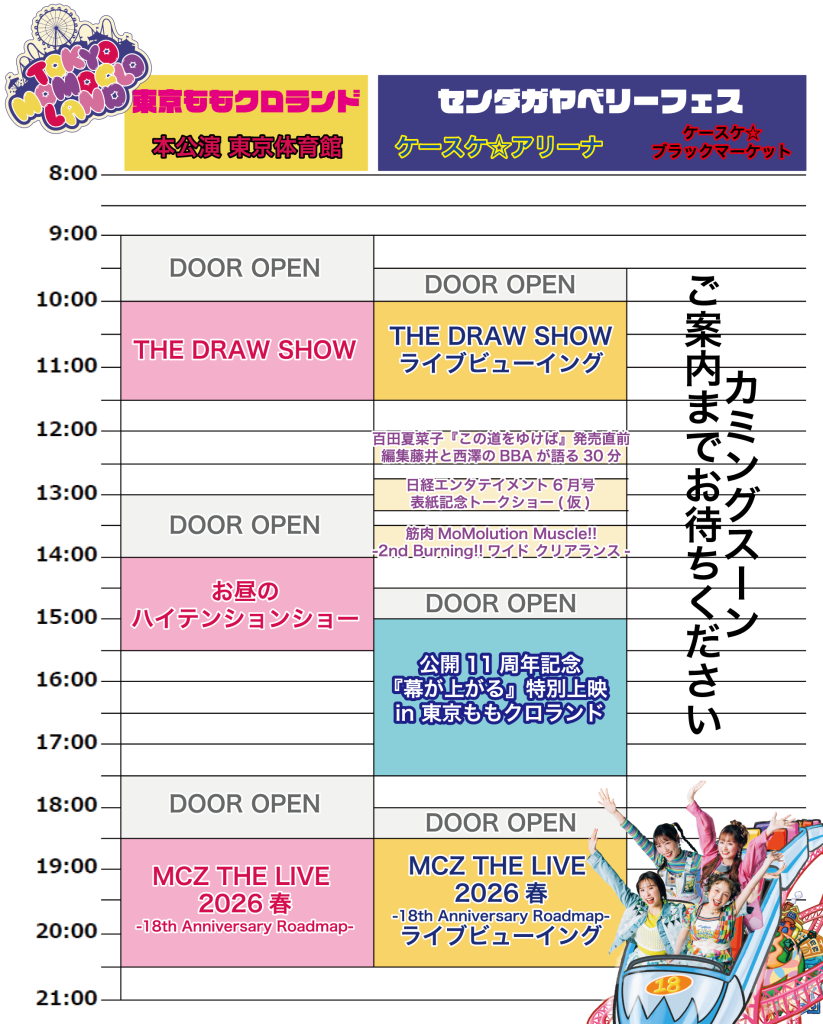 ※東京体育館で行われる2公演「お昼のハイテンションショー」「MCZ THE LIVE 2026春 -18th Anniversary roadmap-」のチケットをお持ちでない方向けの上映会となります。上映会と東京体育館で行われる2公演の行き来はできません。2公演のチケットをお持ちの方は購入されないようお願いいたします。
